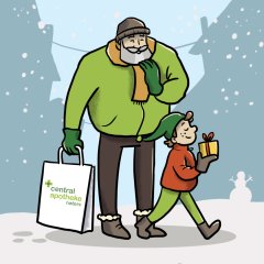 Max und Grosspapi sind unterwegs, um die letzten Weihnachtseinkäufe zu erledigen.